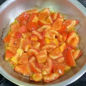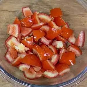 Você pode utilizar tomates cereja no lugar dos tomates em cubos.